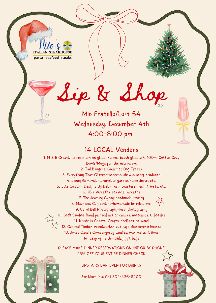Welcome to Mio Fratello, a delightful Italian eatery nestled at 38016 Fenwick Shoals Blvd in Selbyville, DE. Here, every dish is crafted with passion and tradition. The menu offers a rich selection, starting with comforting Italian Wedding Soup and the daily Soup du Jour, perfect for warming the soul.